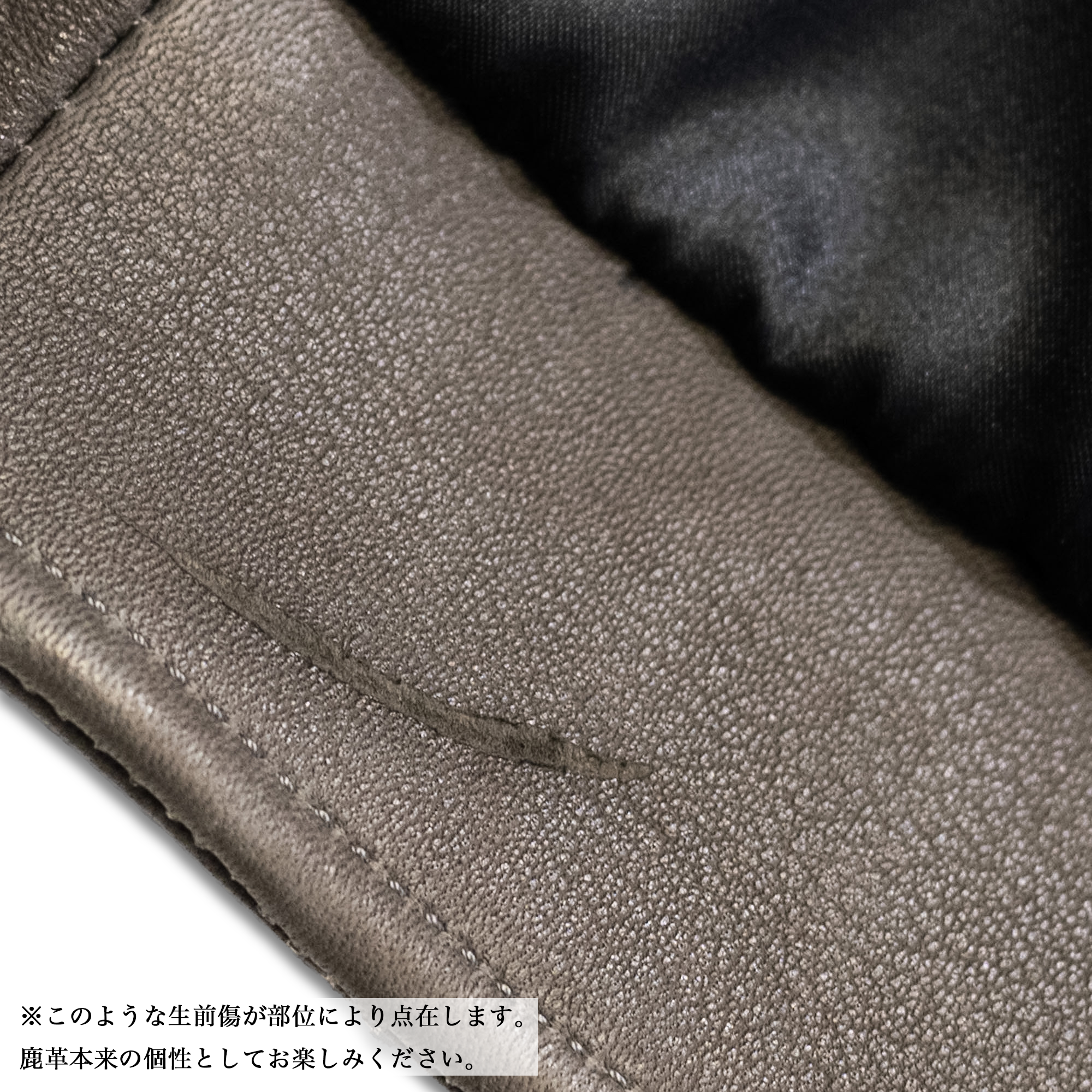 ※野生の鹿の行動特性上、生前に付いた銀面の擦れやクレーター状の銀面剥げ、細かな傷がございます。鹿革の持つ風合いとしてお楽しみください。