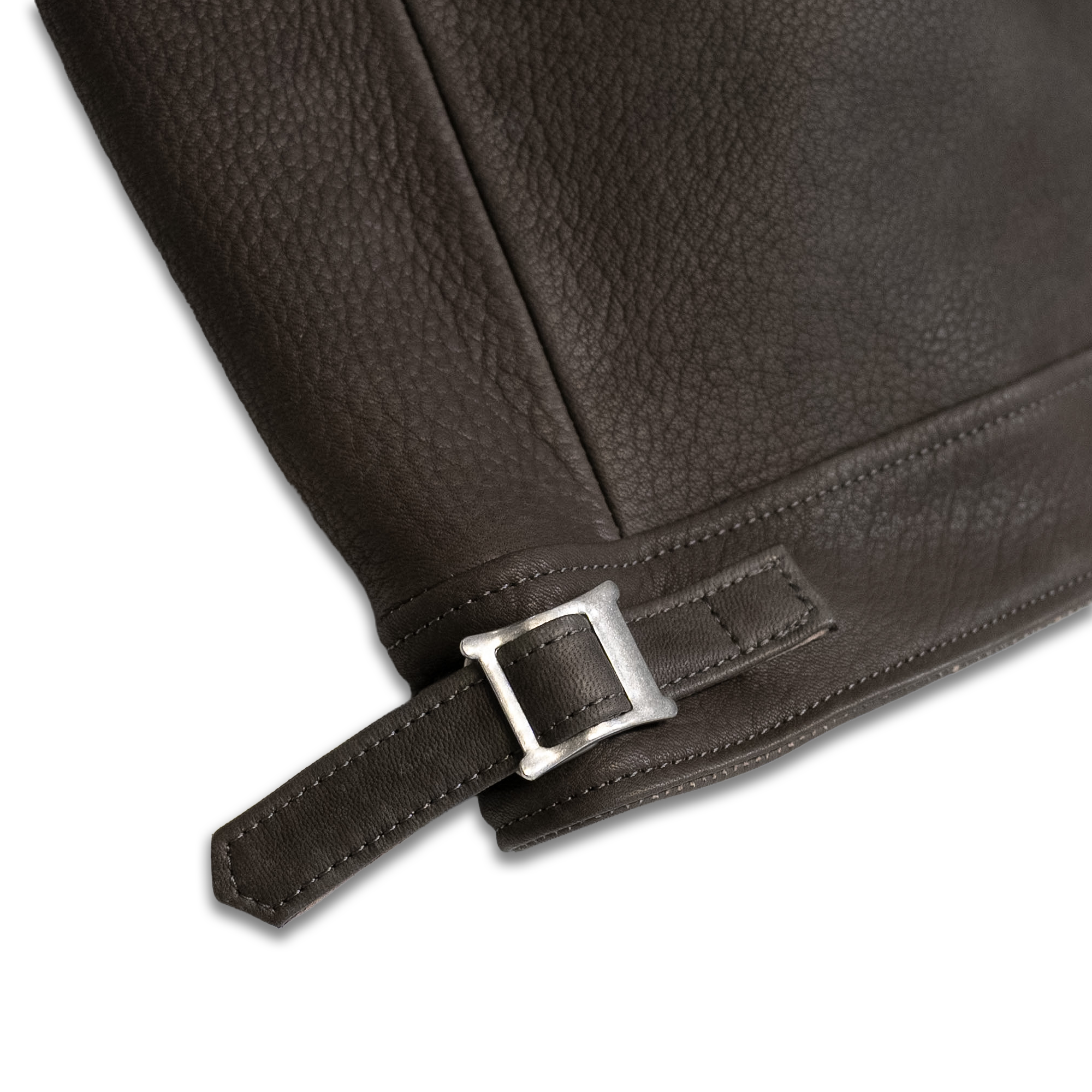 我々が使用する細かな運針のミシンに収まる限界の厚みにて仕上げたこの鹿革は、しっかりと深く畝のある皺が刻まれるよう完璧に計算されて作られました。